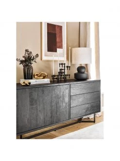 Westwing Collection Schwarzes Sideboard Lyle mit Türen aus massivem Mangoholz, B 150 x H 72 cm