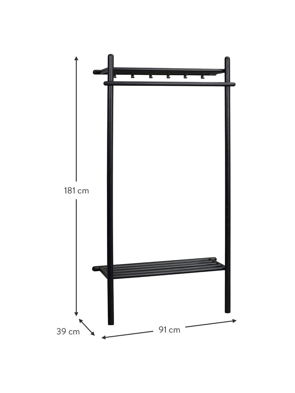 – Garderobe mit 1 Kleiderstange, 2 Ablageflächen und 6 Haken