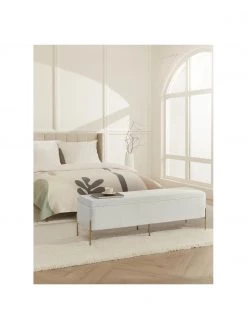 Egal ob zum Füße hochlegen oder als zusätzliche Sitzgelegenheit für Gäste: Chiara ist vielseitig einsetzbar und bietet noch dazu viel Stauraum. Unter dem Deckel verschwinden Decken, Kissen und Kleidung im Kinderspiel. Besonders gut gefällt uns der softe Samtbezug und die dekorativen Zierknöpfe.